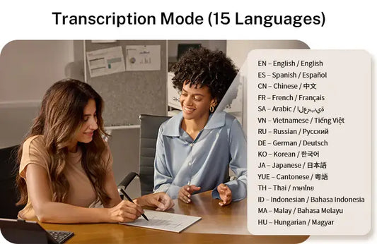 15 Languages Real-Time Transcription & 10 Languages Translation