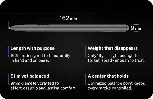 - 162mm length with 19g centered balance for fatigue-free writing